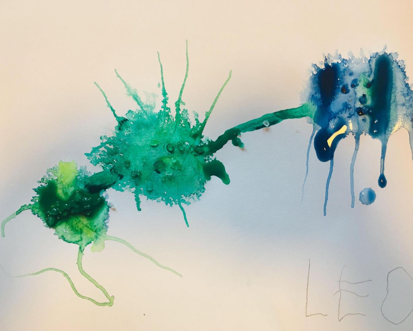 ”Tillsammans kommer vi att experimentera och undersöka akvarellmåleriet på ett enkelt och roligt sätt med mycket vatten, pigment och lite oväntade redskap. Utan att egentligen måla med färgen, ser vi hur vattnet och slumpen leder färgpigmenten till oväntade och unika former. Inget är rätt eller fel, alla bilder blir olika och vi kanske kan hitta några figurer i mönstret när det torkat?”